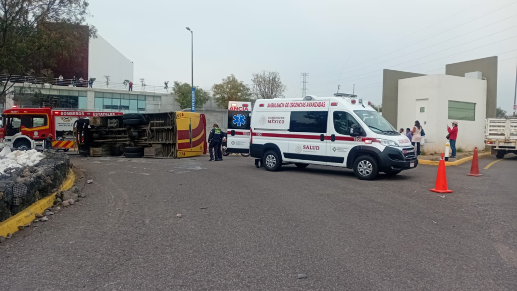El Centro Regulador de Urgencias Médicas (CRUM), de la Secretaría de Salud de Michoacán (SSM), desplegó un operativo de atención para asistir a las personas lesionadas tras la volcadura de un camión de pasajeros registrada este martes en la glorieta de Tres Marías, en la ciudad de Morelia.