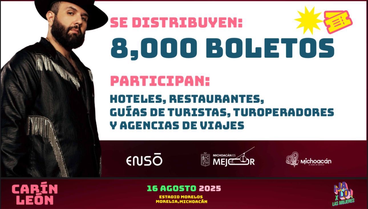 *Morelia, Michoacán, 11 de agosto de 2025.-* Hoteleros, restauranteros, guías de turistas, turoperadores y agencias de viajes se unen al Jalo x las mujeres, evento que presenta a Carín León el próximo sábado 16 de agosto en el Estadio Morelos.