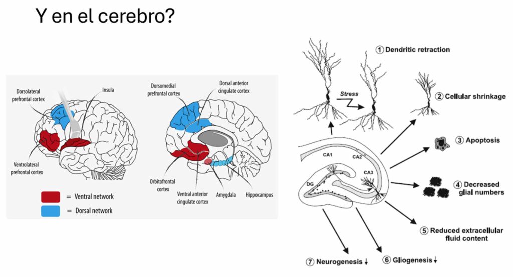 Esas hormonas son “veneno” para varias estructuras cerebrales que se verá en una disfunción. Durante la depresión, añadió el experto, algunas como el hipocampo, se encojen: los glucocorticoides también provocan que las neuronas decrezcan y que la estructura se comprima.
