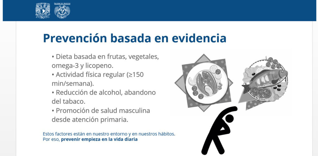 En el auditorio Gilberto Guevara Rojas de la FM urgió a combatir la resistencia de los varones para acudir al médico, e insistir que en etapas tempranas es una enfermedad tratable. El peligro de padecer esta enfermedad aumenta con la edad, por lo que los hombres deben examinarse a partir de los 40 años, con regularidad anual.