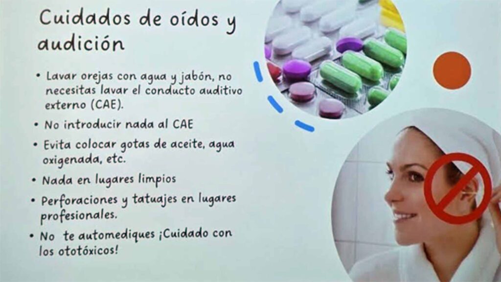“Entonces no introducir nada al conducto auditivo externo; evitar colocar gotas de aceite, agua oxigenada, ponerse los conos que se queman. Hemos tenido pacientes con heridas importantes por estas técnicas; hay que nadar en lugares limpios, cuidar el agua de las albercas; si se van a practicar una perforación o un tatuaje, que sea en lugares profesionales y asépticos”, concluyó.